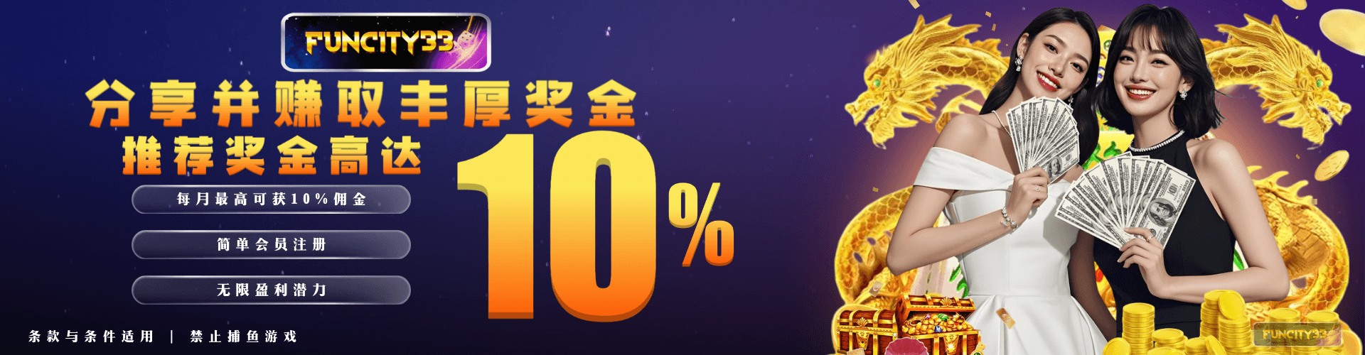 Funcity33.com在线俱乐部为最具活力的玩家提供比赛。 有兴趣在赌场玩的玩家可以获得丰厚的奖金,从而获得更多的乐趣。 Funcity33是马来西亚在线赌场,其中: